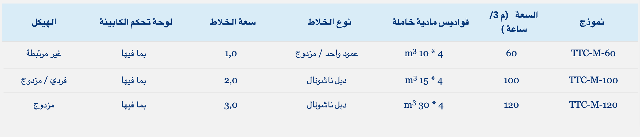 تهتم TTC بالعملاء وتجعل من الاستخدام سهل وفعال للمصنع. كل مرفق مجهز بكابينة تحكم تتكون من لوحة تحكم بها جميع أزرار التشغيل والإيقاف وجهاز كمبيوتر حيث يمكنك متابعة جميع العمليات. الكمبيوتر يمكنك أيضًا من مراقبة امتلاء الوحدات وإدخال عدد غير محدود من إيصالات الخرسانة. بالإضافة إلى ذلك ، يمكنك الوصول بسهولة إلى التقرير.